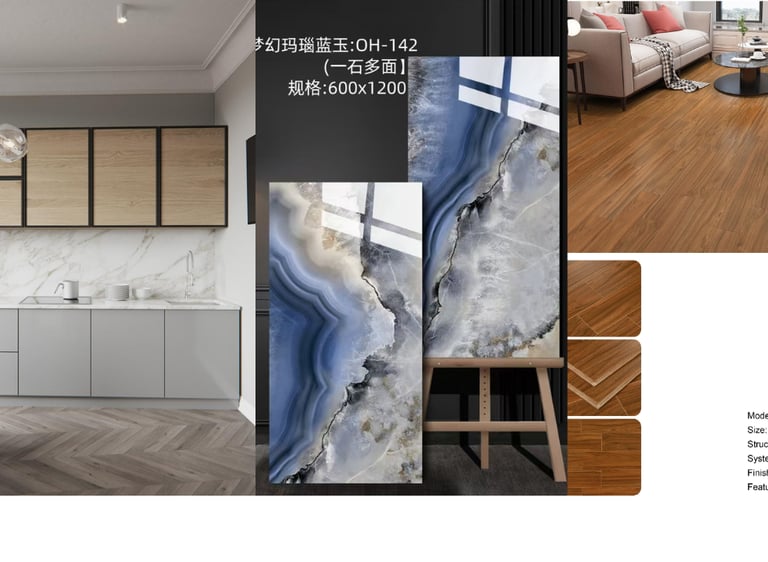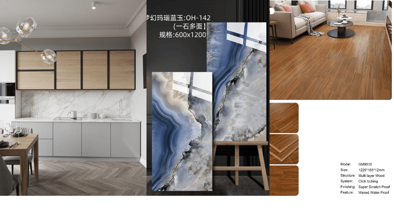 High-quality kitchen cabinets, tiles, windows, doors, wooden floors, and hardware supplies...